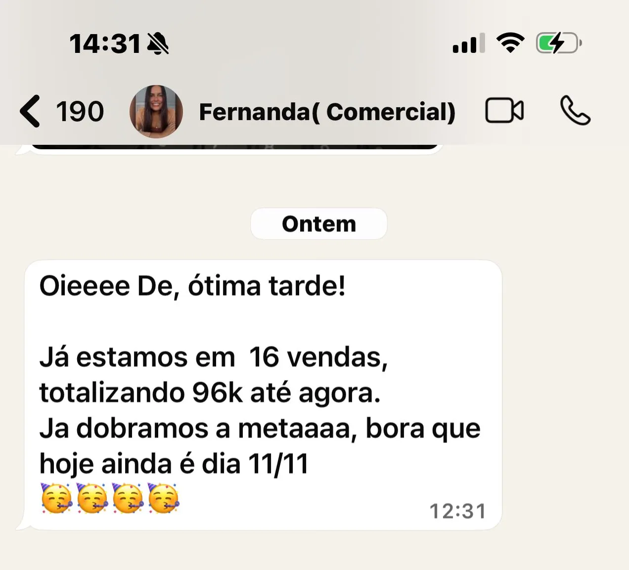 Meta dobrada antes da metade do mês: 16 vendas e quase R$100 mil faturados.