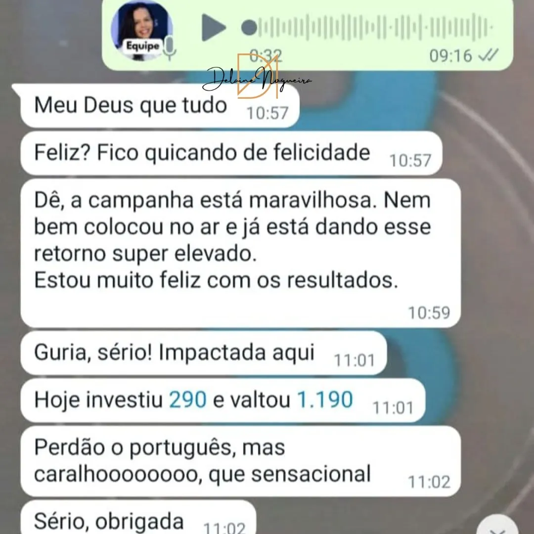 Campanha de anúncios recém ativada e já dando retorno alto… investiu R$ 290 e voltou R$ 1.190