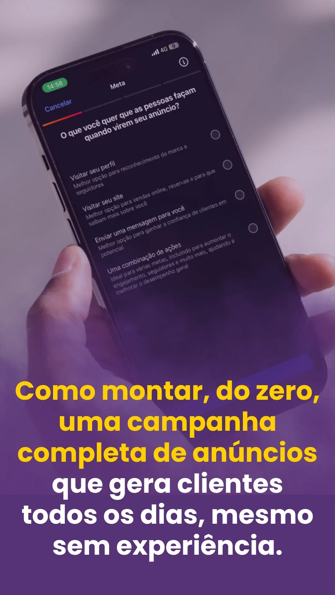 Anúncios colocam sua oferta exatamente na frente das pessoas certas, todos os dias, mesmo que você não tenha tempo, seguidores ou experiência.